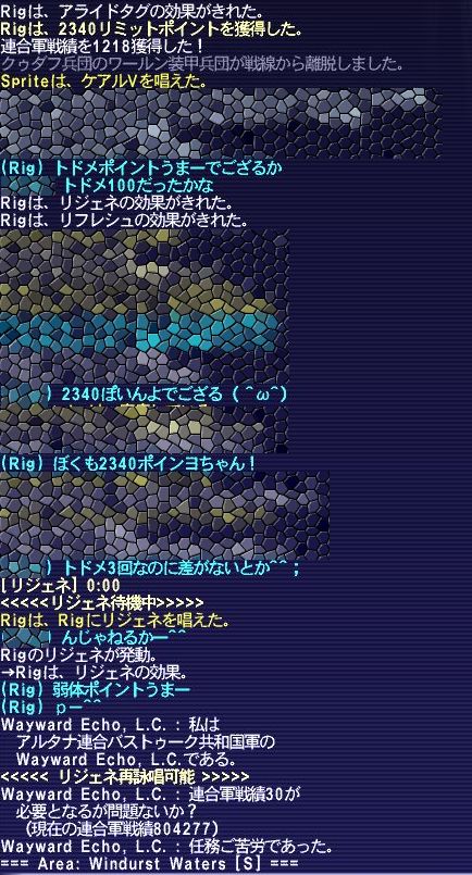 二匹目は北の方でシーフと忍者の2人組がやってるのをつんたんが必死でタゲ取ろうと、インビンシブルとかA.フラリッシュとか使ってた。でも結局タゲは取れなかったっぽい。トドメはつんたん。