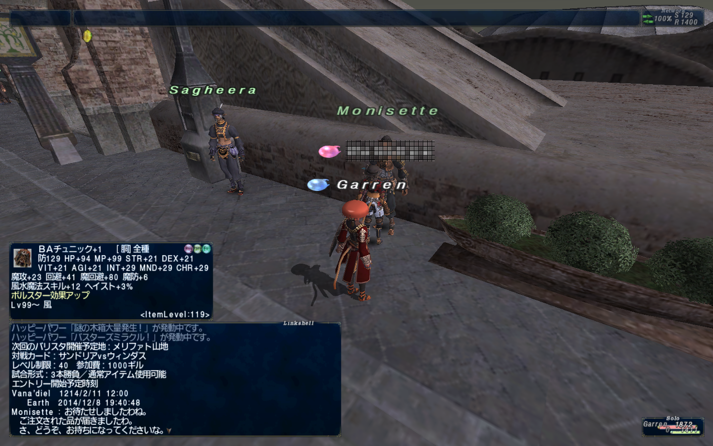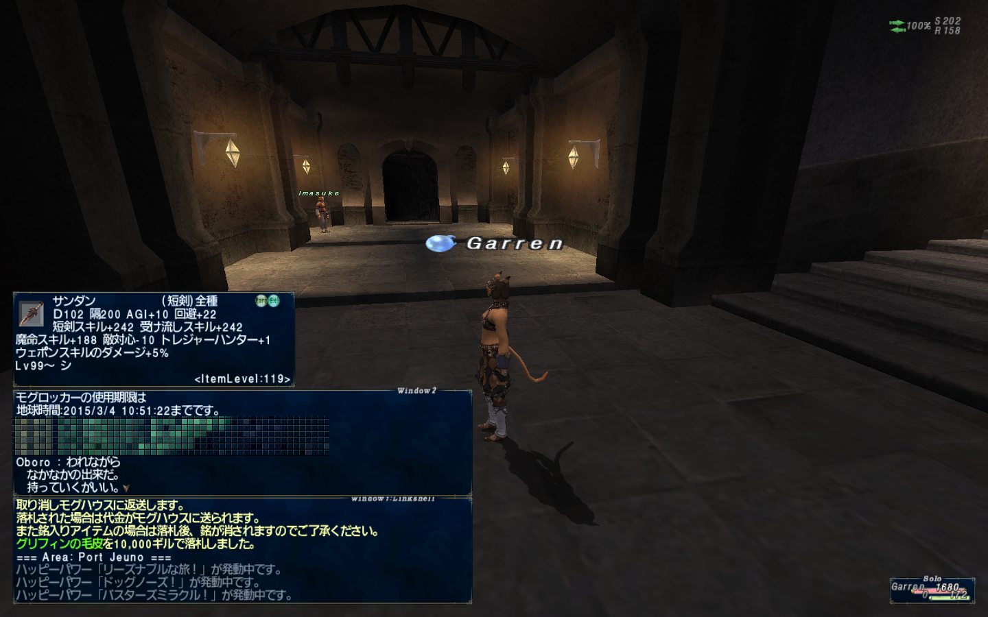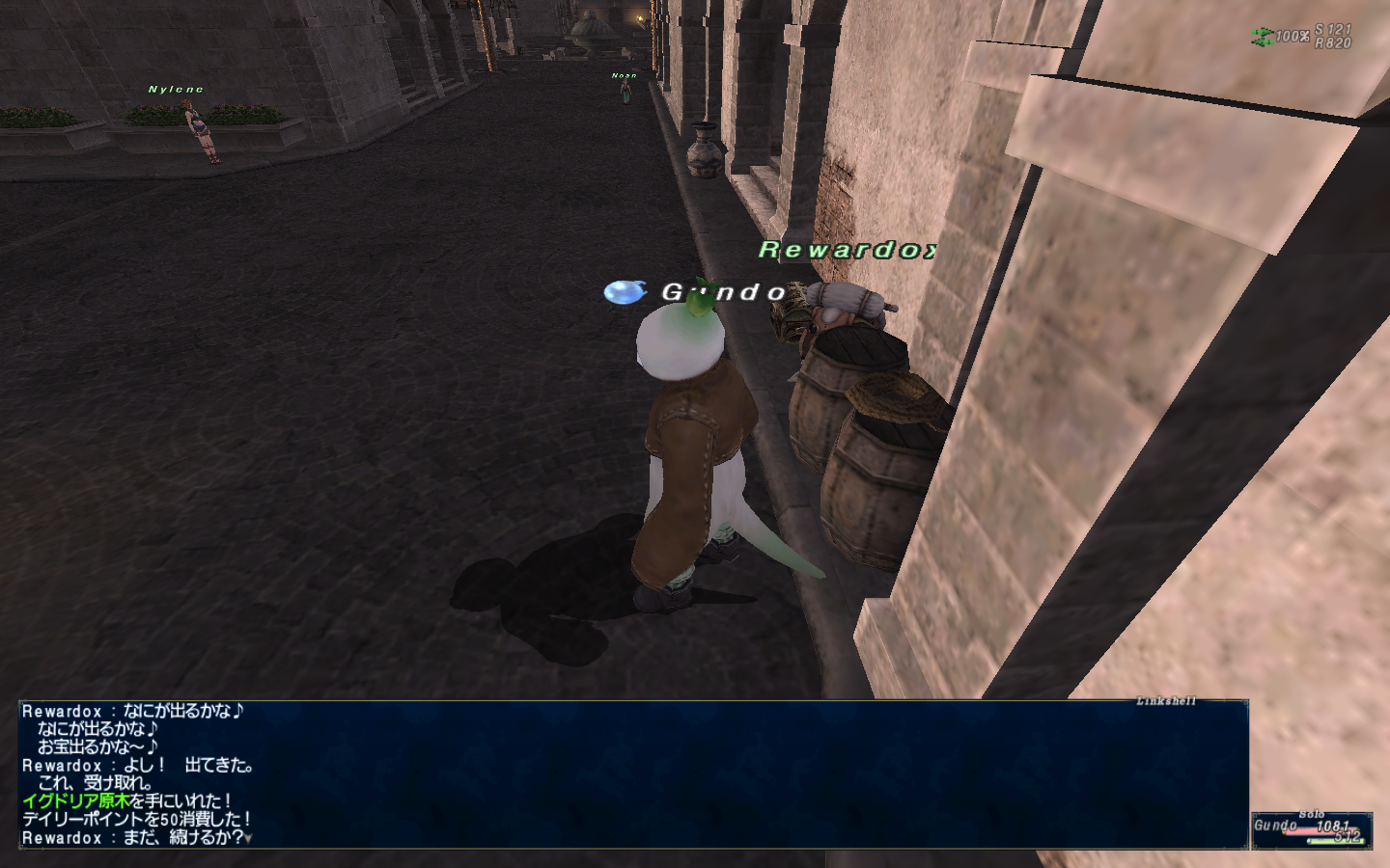 12月上旬のBA前後、色々キャンペーンをやったり装備を強化したり。ブログの更新はサボっていますがFF11は毎日のようにプレイしています。ゴブリンの不思議箱でデイリーポイントを消費しなくてもスペシャルダイヤルを回せるダイヤルキー#SPなるアイテムを1日1個配布してくれていたのでそれ+デイリーポイント50で2回回していたら、倉庫キャラのGundo君がイグドリア原木をゲットした。うまい!あと、これもGundo君だったとおもうけどマルシバースコリアがでたよ!