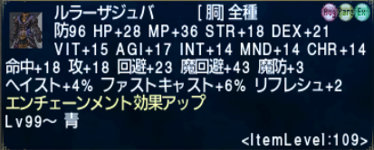 そして、それとは別にぷるちねっらさんで青魔道士を上げたんですが、物理命中が800中盤しかなくて辛かったので青胴レリックを119に、青足AFを119にして物理命中900中盤まで伸ばしました。ある程度強めの敵にもそこそこ当たるようになったぞー^^