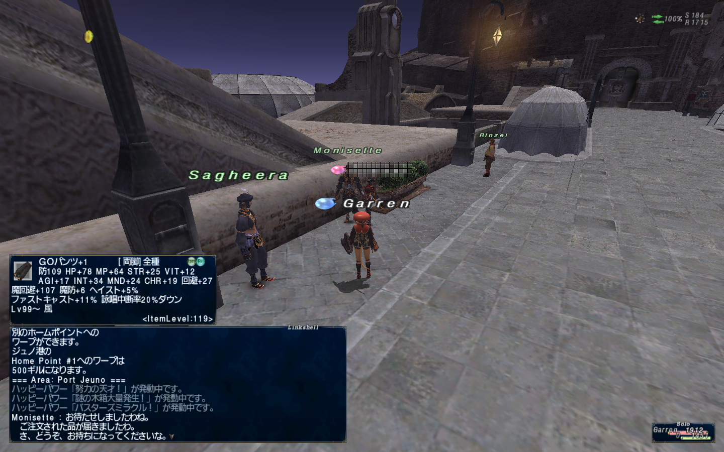 AF119のGOパンツ+1。ジオパンツ+1です。これはファストキャスト目的で強化しました。えーw レリック装束のパンツも強化すればいいじゃーん?w