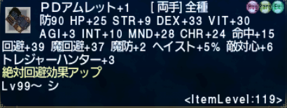 WSダメージアップもついてる逸品。あとアサシンアムレットのIL119版がトレジャーハンター+3なのでそれも強化して作りました。