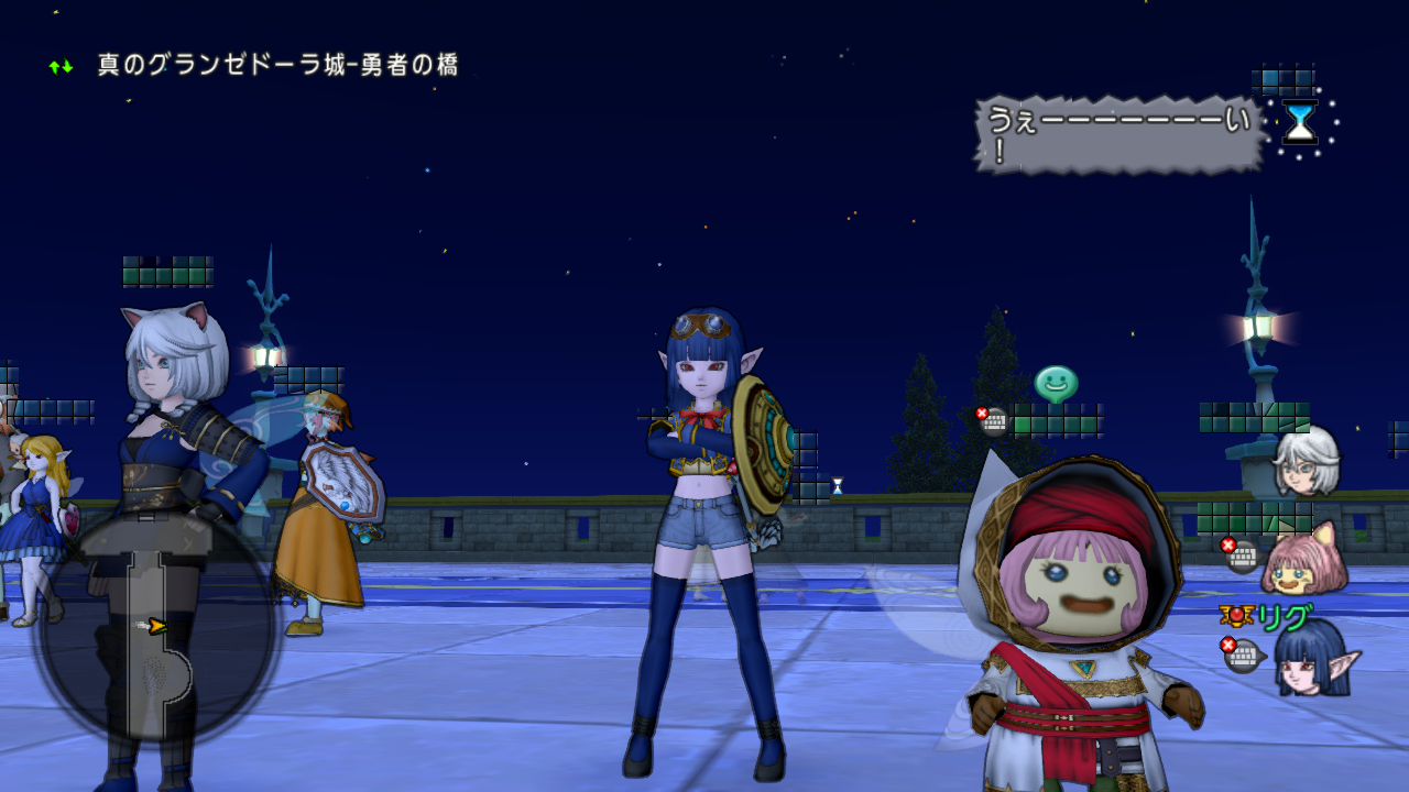 しりさんを誘ってグランゼドーラの勇者の橋?だかに移動する。ここも当然人が多い。だが橋の幅がすごく広いので快適です。