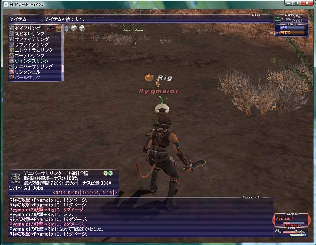 Lv15からはD14のバンディットガンを装備出来ます。バストゥークで18000ギルだかで購入。ついでに倉庫キャラからリザード装備なんかも送りました。その後、アルザビに行ったらダイス屋が捕虜から解放されて帰ってきていたので、暗黒騎士のダイスと狩人のダイスと白魔道士のダイスを買いました。白魔道士のダイスはLv20まで使えません。