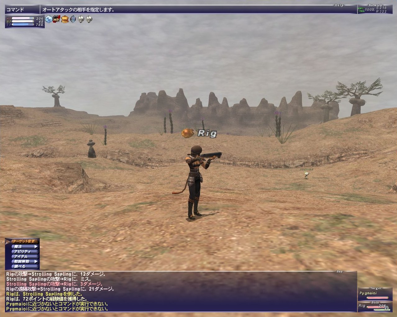 昨日結局Lv11まであげました。今日はその続きをサルタバルタでLv12まであげて、その後タロンギに移動。射撃はマスケトンという銃とブロンズブレットの組み合わせでやってました。マスケトンのDが6、ブロンズブレットのDが3の合計9。いくら遠隔が強いと言ってもD9では雑魚です雑魚。