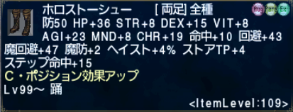 そういえば長らくモグ金庫に入りっぱなしになっていETトーシュー+2オグメ無しをホロストーシューにしました。IL109のやつ。これで預かり帳に預けることができます。