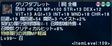 CLダブレット+2[胴]防50 MP+60 召喚魔法スキル+10 召喚獣維持費-4 召喚獣:契約の履行ダメージアップ→