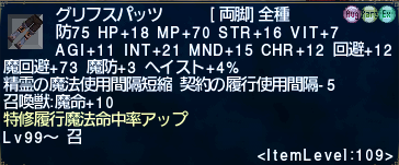 CLスパッツ+2[両脚]防40 MP+45 召喚魔法スキル+6 ブラッドブーン+10 召喚獣:TPボーナス→