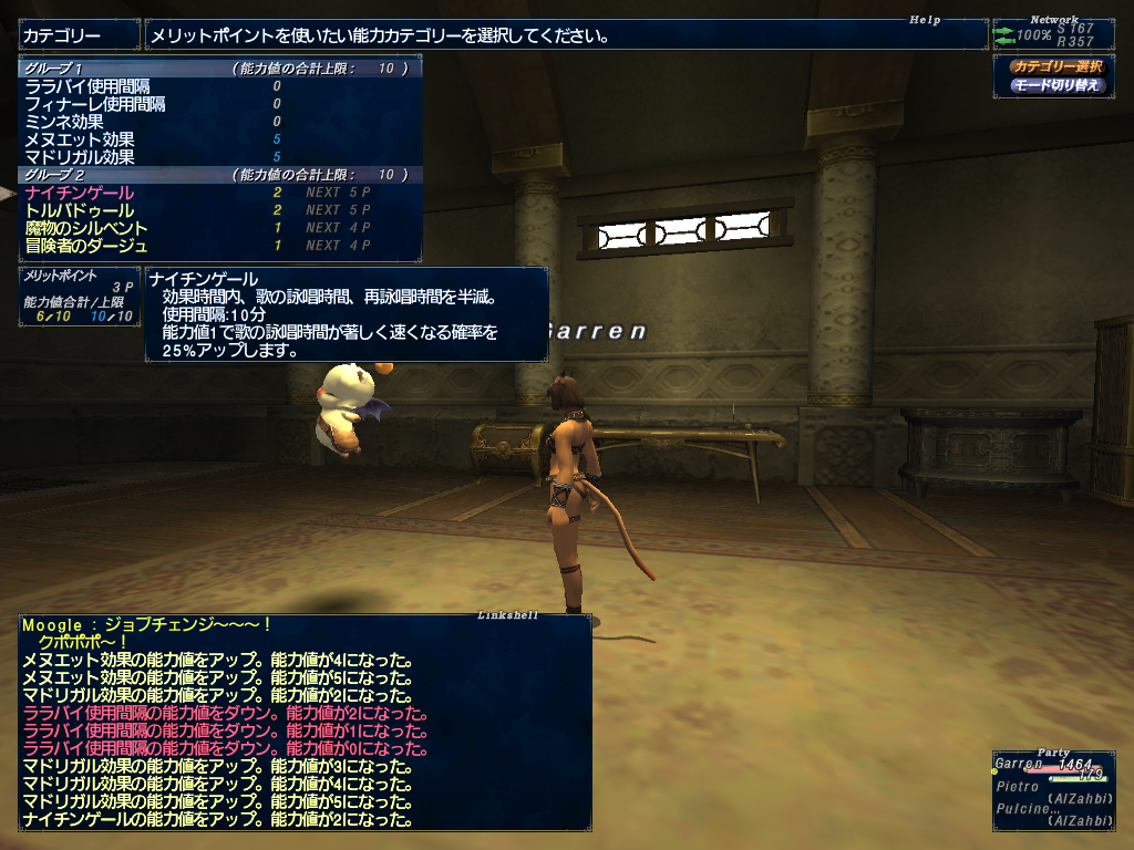 そういえばぷるちねっらさんの魔導剣士レベルが75を超えていて、メリットポイントも30カンストしてたので振ってみるなど。