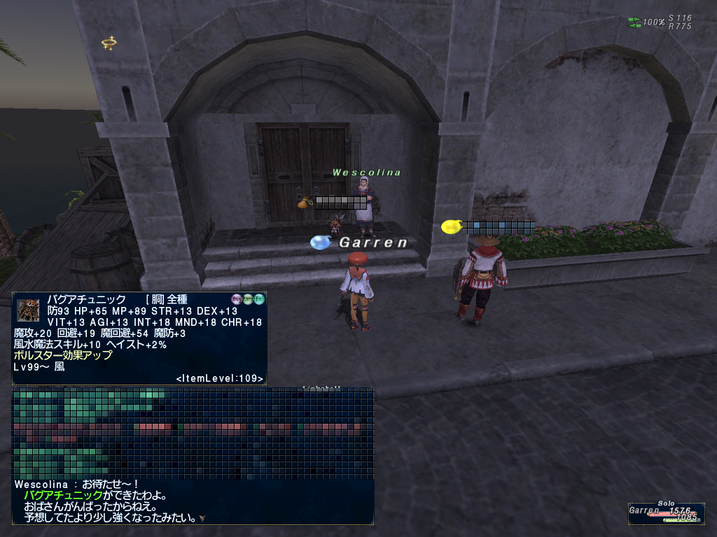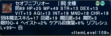 さらに、2月18日のバージョンアップで追加された風水士のレリック装束を5部位作りました。IL109の奴ですが、手の部位はリフレシュが付いててウマー^^