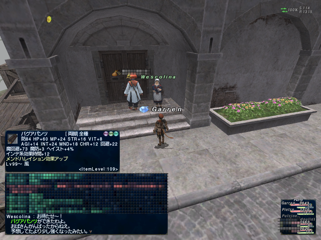 えー、コンテンツレベル125らしいです。我等の主力装備はIL113~117。えりんぎさんの杖がIL119だけど、防具はIL113のハゴンデス装備類とIL115のオトミグローブかな?ぷるさーんはIL117のアチニンスタッフとハゴンデス、オトミグローブ。