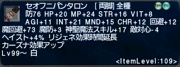 ADラングラヴ+2[両脚]防42 魔法命中率+7 歌唱スキル+10 歌再詠唱間隔-6 バラード+1→