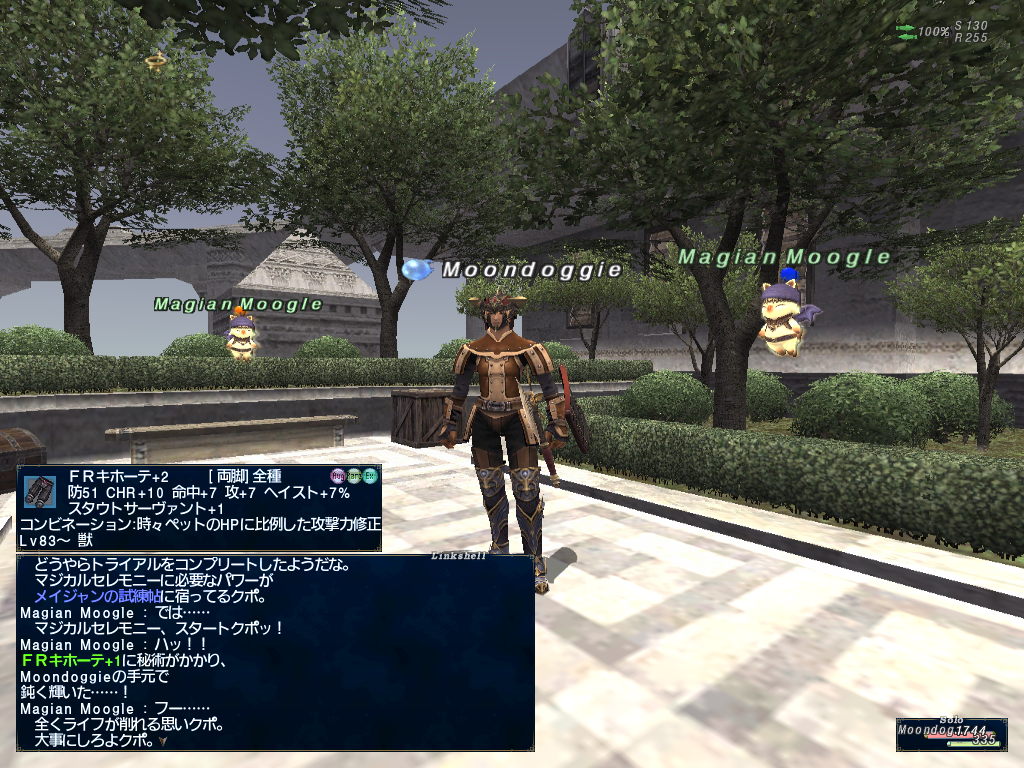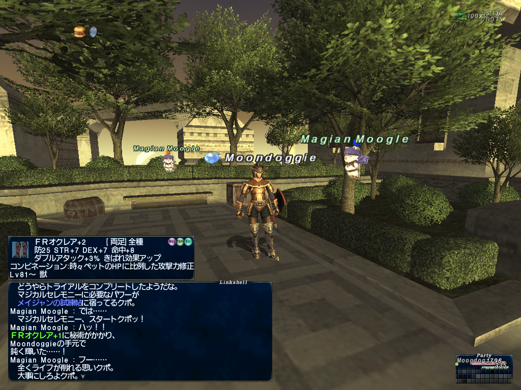 で、ようやく28になって革細工スキルの指定生産品納品契約を結んで、Festiva Moogleからモーグリチケット【金】をもらって、すぐにモーグリにチケットをトレードしてポイントをもらいました。