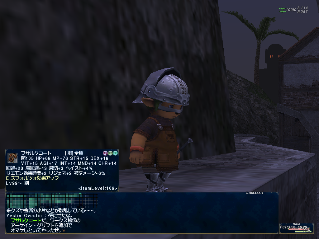 先月末あたりのこと。ぷるちねっらさんは魔導剣士AFをぽこめんの協力により全部位ゲットしたので(クエスト報酬部位)、その他NPC制作部位を制作完了し、レリック装束クエストを発生させてうんたらかんたら。