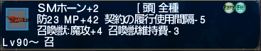 で、このSMホーン+2、IL109とかIL119にすると召喚獣維持費がー4になる。各種ステータスも付与されてアドゥリンエリアで殴られても多少は耐えられるようになるので、強化するか、と強化素材を集めていたものの、レム物語が足りなくて手詰まり。あと、サマナーダブレットもIL109で維持費ー4なんですが、こっとは現物自体を持ってなかった。