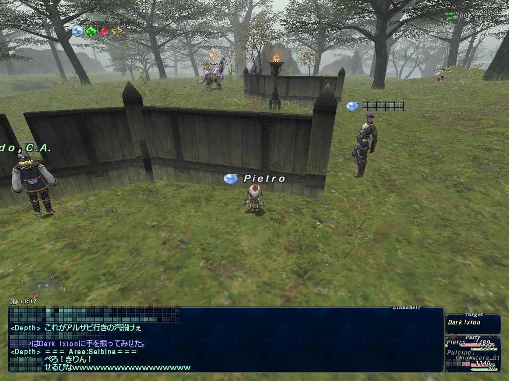 先日、しりさんのサブキャラのじいちゃんとカンパニエ待機していたらDark Ixionが視界内にやってきました。しりさんが「きりん」と言っていたので何のことか一瞬わからなくて「?」となっていましたが、画面を見てすぐ分かりました。