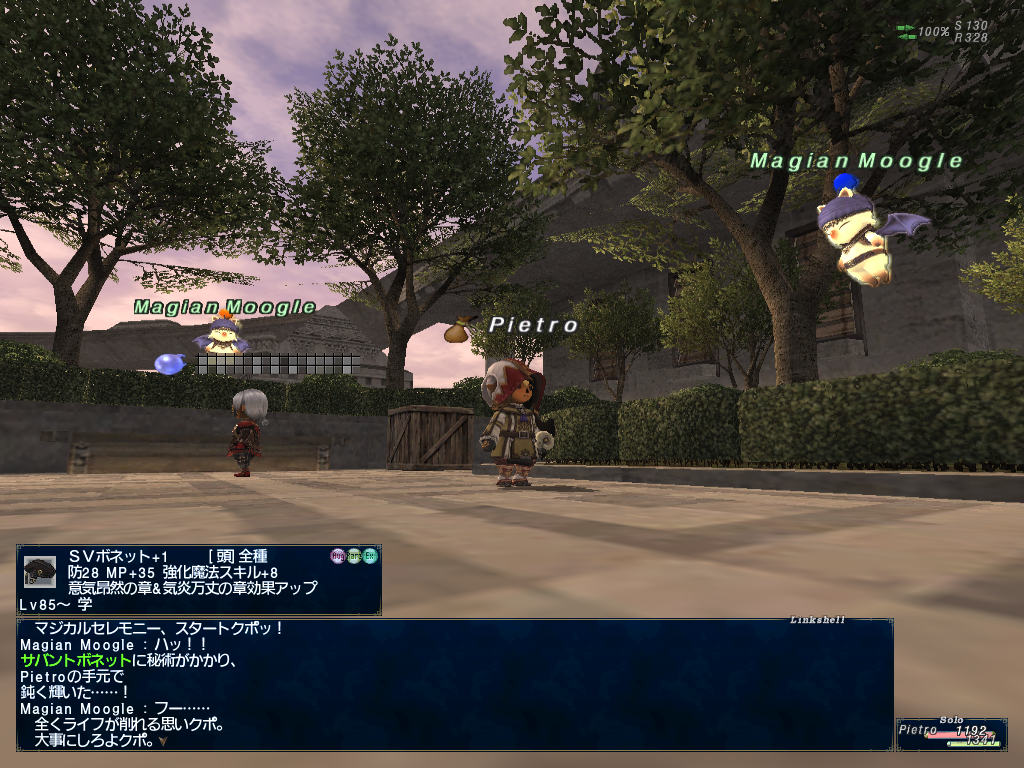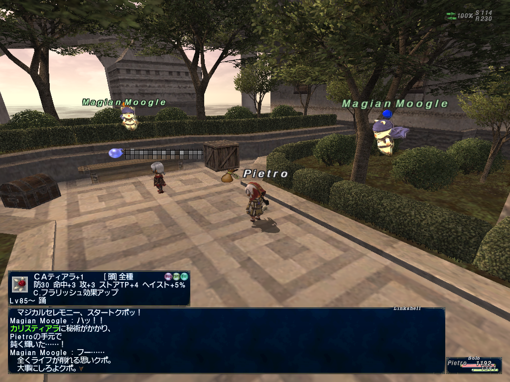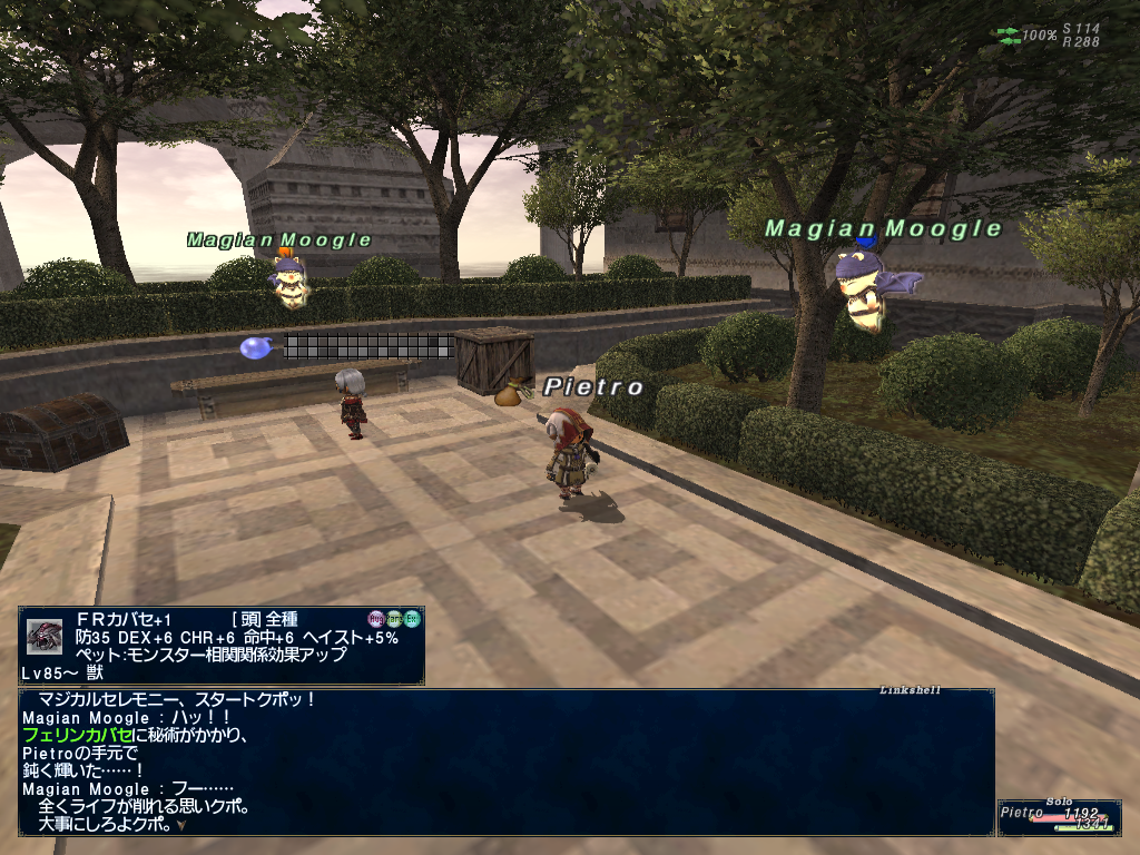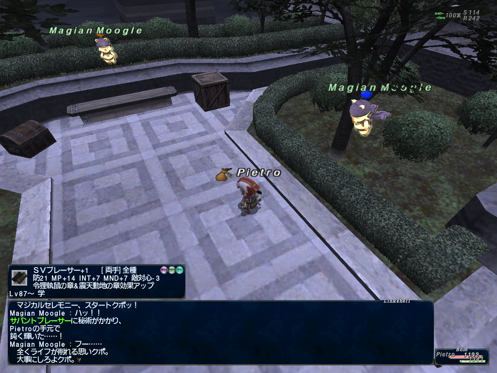 ピエトロ君のかばんがやけにアイテムパンパンだなーとおもったらちょっと前の継続ログインキャンペーンでもらった、上げたジョブと上げる予定のジョブの型紙でかさばってたようです。倉庫キャラに送ってなかったのでありました。