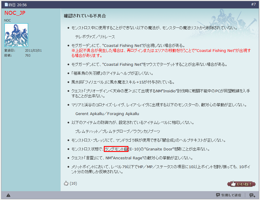 そういえば更新情報の不具合の項目のところに誤記がありました。