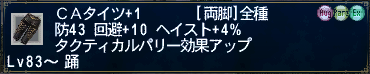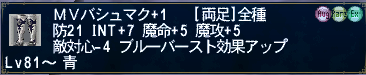 MVタイト+1[両脚]防45 STR+5 DEX+5 青魔法スキル+10 ヘイスト+3% エフラックス効果アップ→