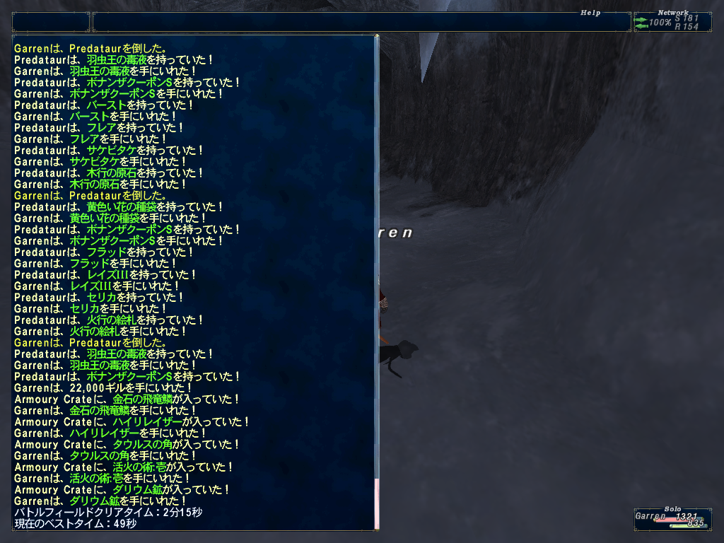 翌日、視線恐怖症というBFに行ってみた。これもキャンペーン対象。熊爪嶽(ウルガラン山脈(J-9)の穴に落ちていくところ。PMの迎え火のBFがあるところ)にゼロスオーブだかをトレードすると入れるBFですねぇ。
