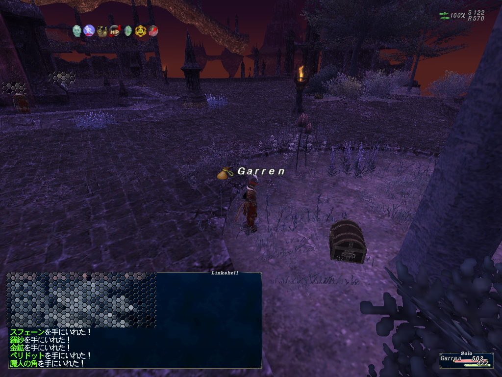 デュナミス-バルクルムのボス、モルボルをやるのに雑魚NMから弱体アイテムを取る。弱体アイテムは全部で3つだけど2つ取った段階でボスに挑む。3つめのキノコのNMは強そうなのでスルー。