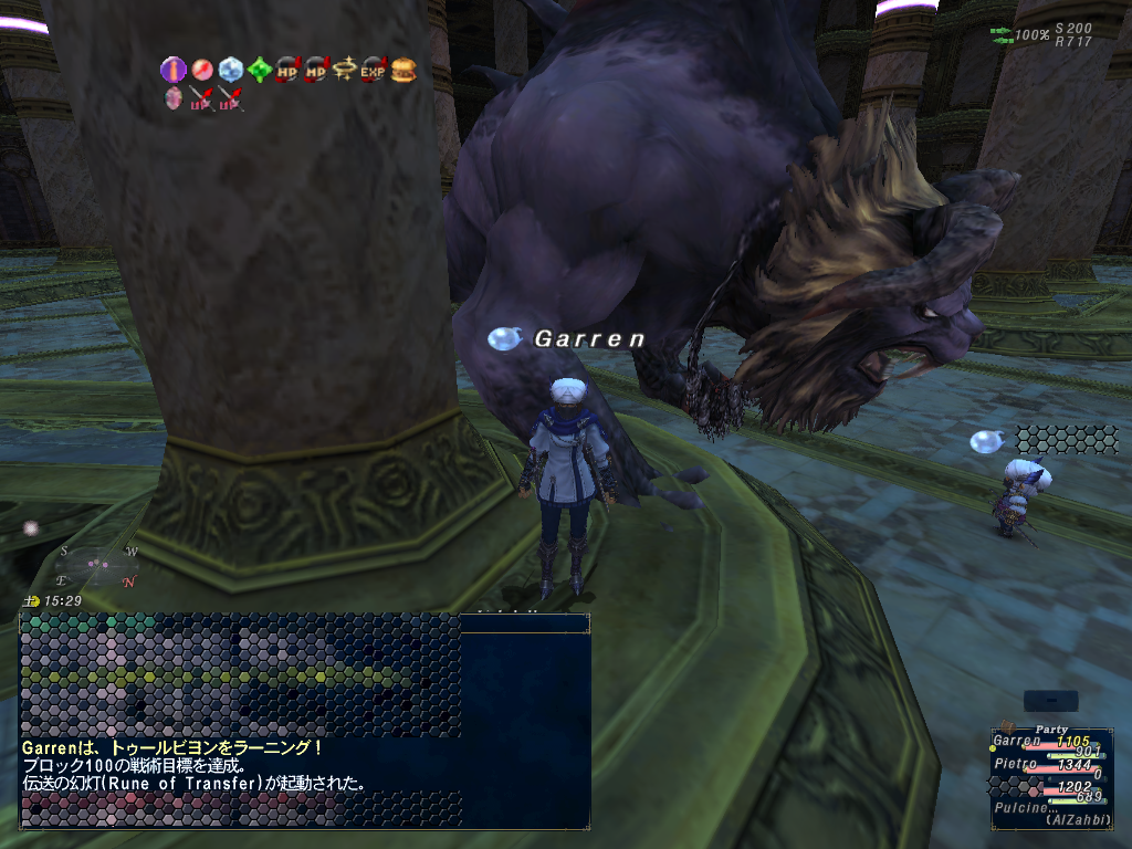 それから旧ナイズルにいってノートリアスナレッジ青魔法をラーニングに行く。しりさん青、ぎゃれん青、ピエトロ踊3人でオッスオッス。4回行って、キマイラ2、ハイドラ1、ケルベロス1だったか。いや、ケルベロスいたかな?ハイドラ2だったかも。良く覚えてない。しりさんはパイリックブルワークをラーニング。私はトゥールビヨンをラーニング。