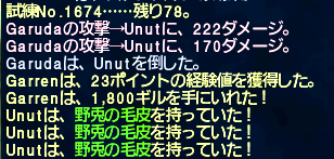 ウサギを200匹をガルーダの攻撃でとどめ。ってのをやってたらウサギNMのUnutだかが沸いたのでどつきまわす。