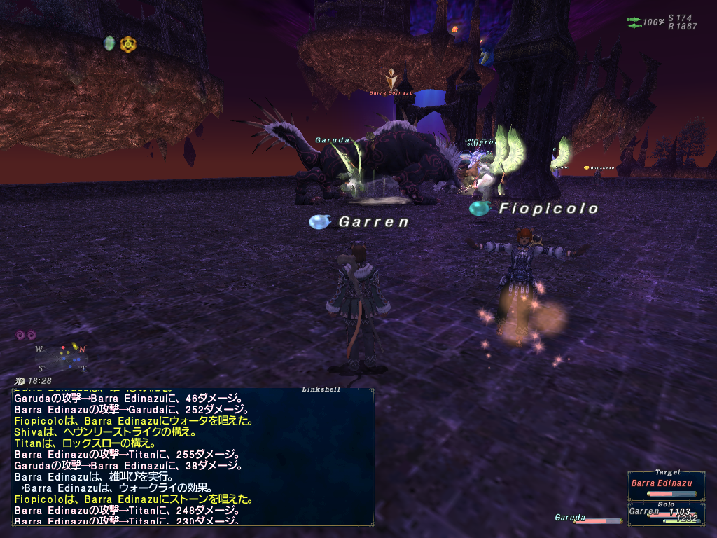 その後、ビシージが来るまで型紙クエストマラソンをやったりして、ビシージをして寝る…。眠れない。なのでピエトロLv94踊り子ソロでタンダバクラッコーでも取りに行くかと、アビセア-アットワに行ってみた。踊/白でアートマは灰燼、凶角、終焉。半分くらいまでは順調に削ってたと思うけど、アムネジア>サイズミクインパクト>テラー>ワルツできない>テラーが治った直後にアムネジア>あばばばば