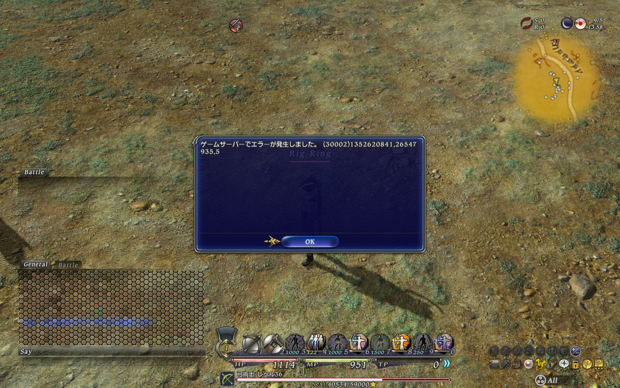その日の最後、寝る前にベコン渓谷の奥に居るキングリザードをどつきに行ったらさらにやばい。通常こうげき1撃でHP200ある戦士が即死してた。いやー、道中にいたゲリュオンの色違いのダークパンサー?もやばかったけど。ダークパンサーの1撃で私が即死するくらい。多分160くらい食らってたんじゃないかなー。